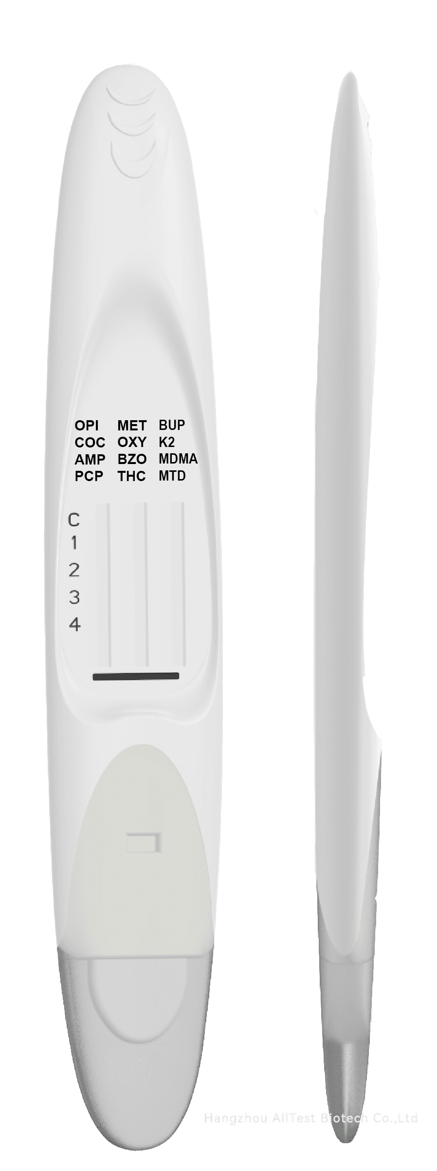 Amfetamiinin (AMP 50), bentsodiatsepiinijohdannaisten (BZO10), buprenorfiinin (BUP10), fensyklidiinin (PCP10), ekstaasin (MDMA50), kannabistuotteiden (THC50), kokaiinin (COC20), metamfetamiinin (MET50), metadonin (MTD30), oksikodonin (OXY40), opiaattien (OPI40) ja synteettisen kannabiksen (K2, 25)