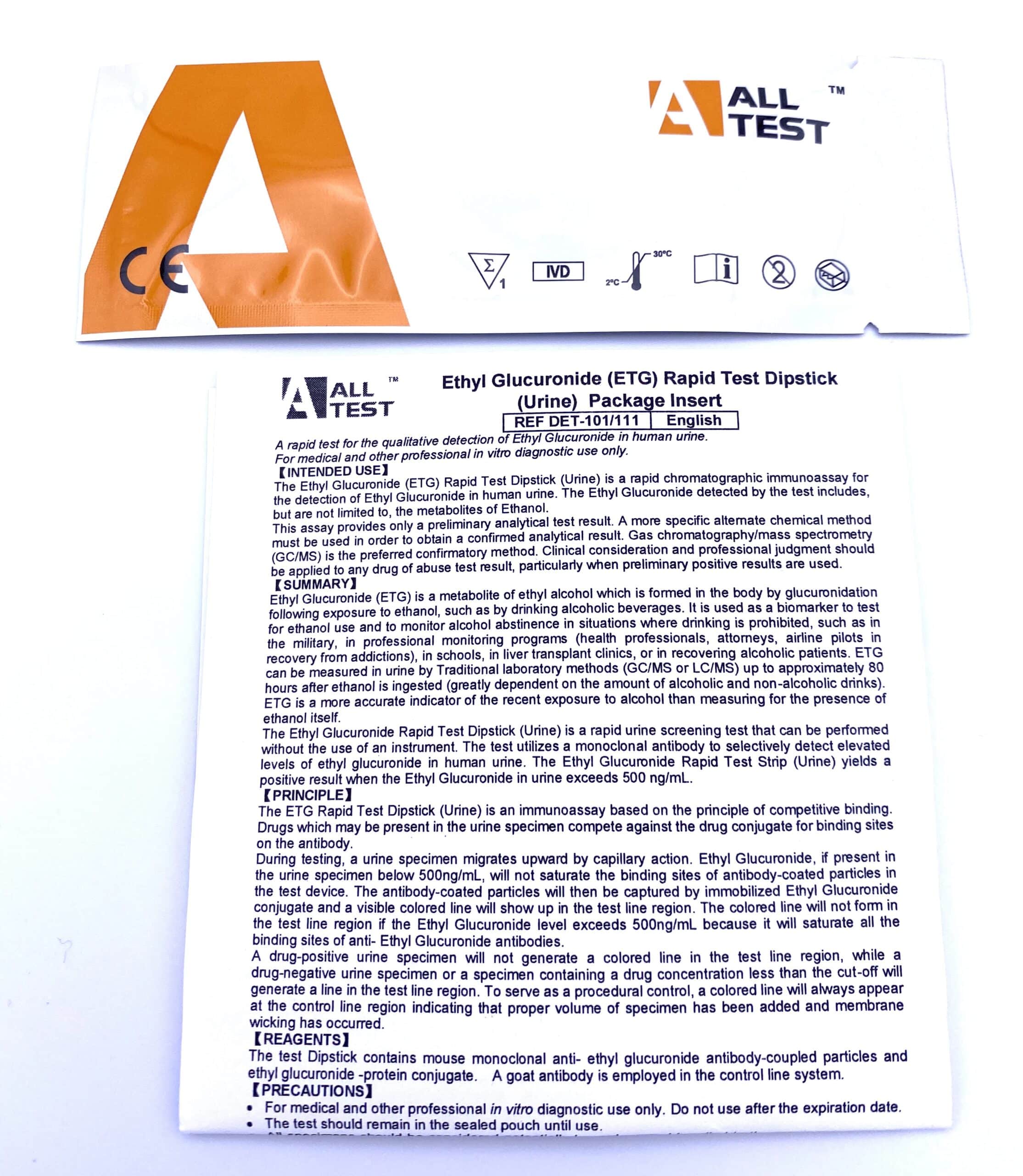 ETG -alkoholitesti havaitsee alholinkäytön vielä sen jälkeen kuin alkoholi on poistunut elimistöstä. Testi tehdään virtsanäytteestä ja se mittaa alkoholista elimistöön syntyvän metaboliitin Etyyliglukuronidi (ETG) pitoisuutta. Etyyliglukuronidi on todettavissa virtsassa vielä useita vuorokausia siitä, kun alkoholi on poistunut elimistöstä. Alkoholiriippuvaisilla potilailla ja suuren alkoholimäärän jälkeen esim. alkoholimyrkytyksessä, ETG voidaan todeta virtsasta jopa 130 tuntia alkoholin nauttimisen jälkeen. Testin herkkyysraja on 500 ng/ml, joka poissulkee muut alkoholialtistukset, kuten alkoholia sisältävät kosmetiikkatuotteet, suuvedet ja desinfiointiaineet.