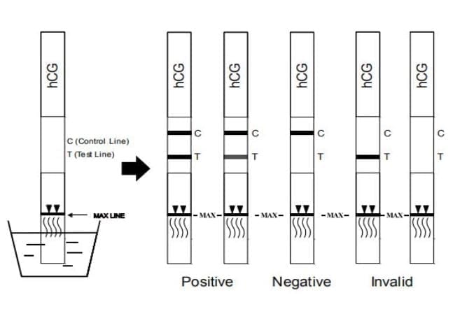 • Kaksi viivaa (C ja T) on positiivinen raskaustesti tulos,