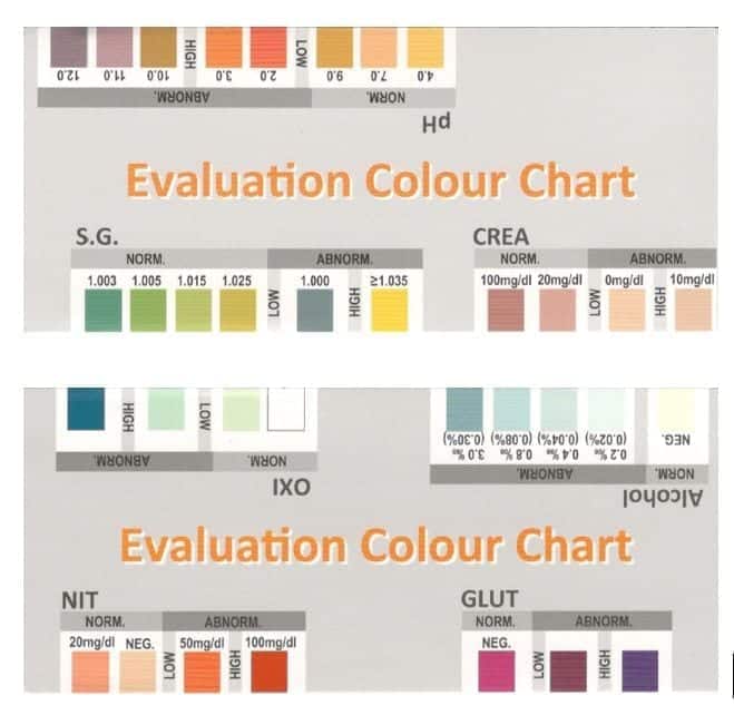 6. Vertaa manipulointitestiä testin mukana tuleviin värikarttoihin (NORM = normaali; ABNORM = epänormaali eli manipuloitu).
